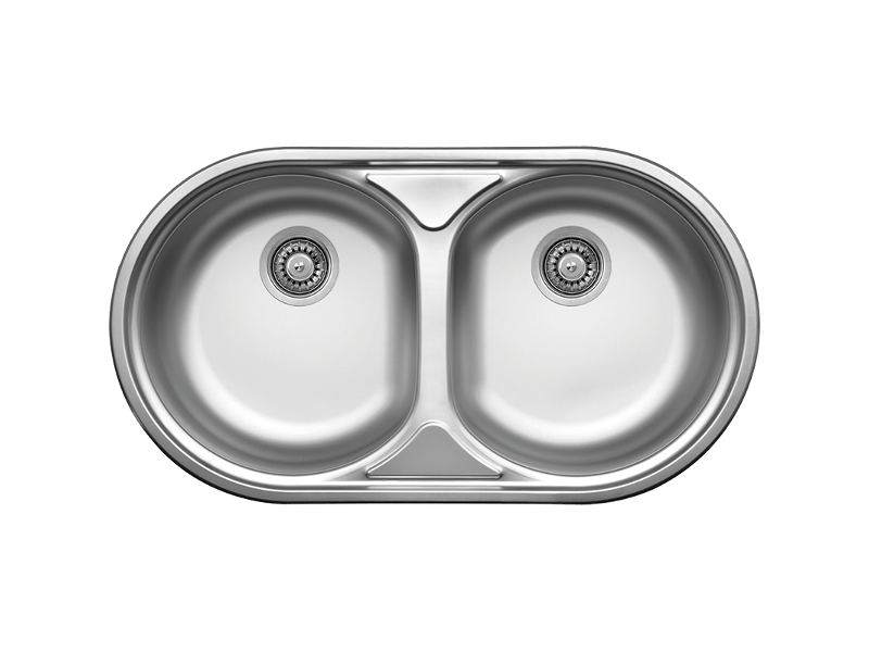 Zlewozmywak stalowy wpuszczany, 2-komorowy bez ociekacza, w zestawie z syfonem.