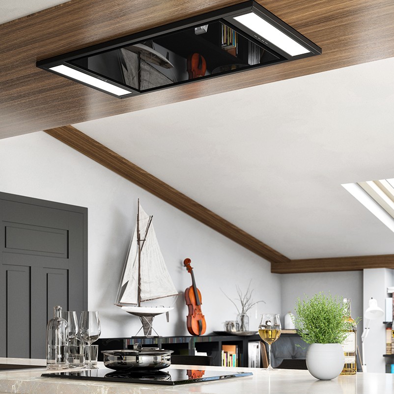 Opis:Klasa energetyczna B, sufitowy, szer. 100 cm, gł. 50 cm, sterowanie za pomocą pilota, zakres prędkości: 3 + boost, wydajność max. 590 m3/h, głośność min. 52 dB, wykonanie: czarne szkło, stal lakierowana na kolor czarny, oświetlenie diodowe 2 x 13 W, dodatki: pilot. Linia GLOBALO DesignZalety i korzyści dla użytkownika okapu Bardot 100.1 BlackSzukasz dyskretnego, lecz w pełni funkcjonalnego urządzenia, które pochłonie wszelkie opary z Twojej kuchni? Absolutnie minimalistyczna forma okapu sufitowego Bardot 100.1 Black z pewnością zawładnie Twoim sercem. Maksymalna wydajność: 590 m3/h Hartowane czarne szkło i stal lakierowana na czarno Zdalne sterowanieFunkcjonalności: Bardot 100.1 Black to okap sufitowy działający w dwóch trybach do wyboru: tryb pochłaniacza absorbuje opary, działając w obiegu zamkniętym (czyli czyste powietrze wraca do kuchni), zaś tryb wyciągu odprowadza je kanałem wentylacyjnym poza obręb budynku mieszkalnego. Okap Globalo wyposażony został w zbierający tłuste drobinki filtr aluminiowy. Dzięki niemu cała kuchnia wolna będzie od tłustej powłoki, a Ty zaoszczędzisz mnóstwo czasu na sprzątaniu. Oświetlenie w postaci 2 pasm diod – oszczędza energię i stanowi doskonałe oświetlenie dodatkowe dla pomieszczenia kuchennego. Okap sufitowy Bardot ze względu na wysokie podwieszenie i dla wygody użytkownika, sterowany jest wyłącznie zdalnie – przy pomocy pilota. Opary z gotowania wyciągane są w 4 trybach prędkości (3 + boost), a więc przy średniej intensywności gotowania nie ma potrzeby włączania od razu pełnej mocy urządzenia.Przeznaczenie: Sufitowy okap kuchenny doskonale sprawdza się w kuchniach minimalistycznych, w których ważne jest, by urządzenie nie dominowało całego wystroju.Materiały Okap kuchenny Bardot 100.1 Black wykonano z czarnego hartowanego szkła oraz stali lakierowanej na czarno, co jest gwarantem trwałości i wytrzymałości urządzenia.Dobrze wiedzieć! Jasny kolor okapu sprawia, że ewentualne zanieczyszczenia są praktycznie niewidoczne.Id produktu Id185#