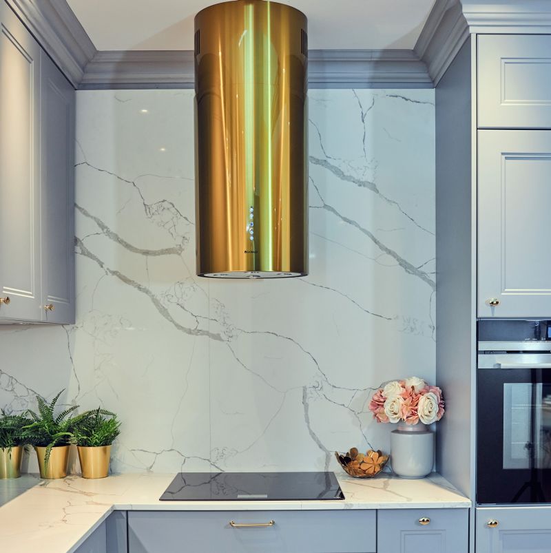Opis:Krótki opis: klasa energetyczna B, wyspowy, szer. 39 cm, sterowanie klawiszami Soft-Touch, zakres prędkości: 3 biegi + boost, wydajność max. 742 m3/h, głośność min. 46 dB, wykonanie: stal szlachetna lakierowana na kolor złoty, oświetlenie POWER LED 4 x 2 W. Linia GLOBALO ExclusiveZalety i korzyści dla użytkownika okapu Cylindro Isola 39.6 GoldCylindryczny okap wyspowy to efektowne urządzenie, dzięki któremu wyspa kuchenna będzie nie tylko ozdobą pomieszczenia, ale również komfortową powierzchnią roboczą, znakomicie przystosowaną do przygotowywania posiłków. Maksymalna wydajność: 742 m3/h Klawisze Soft-Touch Cicha praca: min. 46 dBFunkcjonalności: Okap wyspowy Cylindro Isola 39.6 Gold to urządzenie, które dostępne jest zarówno jako wyciąg, jak i jako pochłaniacz. Wyciąg odprowadzi zassane powietrze oraz parę wodną na zewnątrz pomieszczenia. Może on być zastosowany jedynie w przypadku, gdy kuchnia posiada podłączenie do kanału wentylacyjnego. Pochłaniacz natomiast oczyści powietrze i wtłoczy je z powrotem do pomieszczenia. Okap wyspowy posiada filtr aluminiowy, a w przypadku działania jako pochłaniacz - można go także wyposażyć w filtr węglowy. Filtr aluminiowy to podstawowy element wyposażenia okapu - oczyszcza on powietrze z tłustych cząsteczek, dzięki czemu nie osiadają one na powierzchni sprzętów kuchennych i mebli. Natomiast filtr węglowy (trzeba zakupić go oddzielnie) oczyszcza powietrze z zapachów. Urządzenie wyróżnia się cichą pracą (minimalna głośność to zaledwie 46 dB). Komfortowe oświetlenie typu Power LED zapewnia dobre warunki do przygotowywania posiłków. 3 stopnie prędkości oraz funkcja boost pozwalają na idealne dostosowanie szybkości odprowadzania powietrza do aktualnych warunków panujących w kuchni. Sterowanie odbywa się za pomocą klawiszy Soft-Touch, a panel wyposażono dodatkowo w wyświetlacz LED. Pracę urządzenia wspomaga wyłącznik czasowy, który pozwala nam na ustawienie czasu (10-90 minut), po którym okap ma zakończyć pochłanianie oparów.Kolor złoty:Złoty kolor okapu w zależności od barwy i intensywności oświetlenia w kuchni może przybierać różny odcień złota. Obydwie okrągłe maskownice (górna i dolna część) są malowane w tym samym czasie i tym samym kolorem. Górna maskownica posiada mniejszą średnicę niż dolna część okapu, co może powodować inne odbicie światła i dawać złudzenie innego odcienia koloru.Przeznaczenie:Okap ten przeznaczony jest do montażu nad wyspą kuchenną. Można go również zaaranżować jako okap przyścienny montując go do sufitu blisko ściany.Materiały:Do produkcji okapu wyspowego Cylindro Isola 39.6 Gold zastosowano stal szlachetną (Inox), która została pomalowana na kolor złoty.Id produktu Id99#