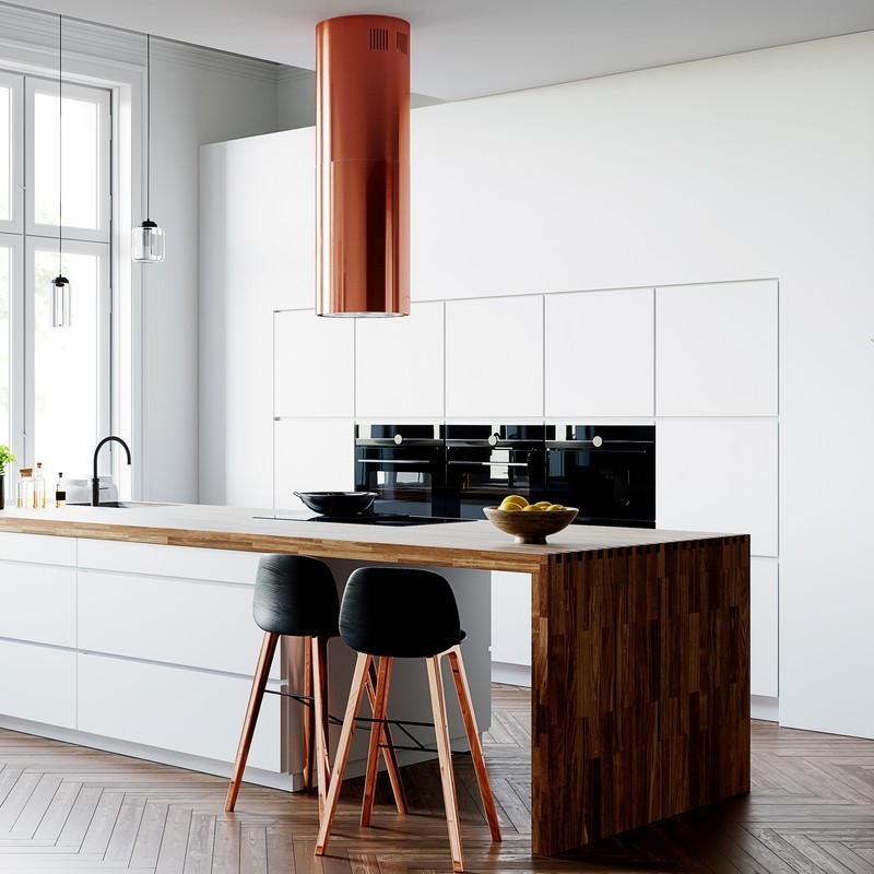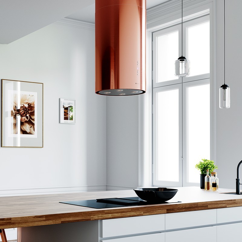 Opis:Krótki opis: klasa energetyczna B, wyspowy, szer. 39 cm, sterowanie klawiszami Soft-Touch, zakres prędkości: 3 biegi + boost, wydajność max. 742 m3/h, głośność min. 46 dB, wykonanie: stal szlachetna lakierowana na kolor miedzi, oświetlenie POWER LED 4 x 2 W. Linia GLOBALO ExclusiveZalety i korzyści dla użytkownika okapu Cylindro Isola 39.6 MiedzianyCylindryczny okap wyspowy to efektowne urządzenie, dzięki któremu wyspa kuchenna będzie nie tylko ozdobą pomieszczenia, ale również komfortową powierzchnią roboczą, znakomicie przystosowaną do przygotowywania posiłków. Maksymalna wydajność: 742 m3/h Klawisze Soft-Touch Cicha praca: min. 46 dBFunkcjonalności: Okap wyspowy Cylindro Isola 39.6 Miedziany to urządzenie, które dostępne jest zarówno jako wyciąg, jak i jako pochłaniacz. Wyciąg odprowadzi zassane powietrze oraz parę wodną na zewnątrz pomieszczenia. Może on być zastosowany jedynie w przypadku, gdy kuchnia posiada podłączenie do kanału wentylacyjnego. Pochłaniacz natomiast oczyści powietrze i wtłoczy je z powrotem do pomieszczenia. Okap wyspowy posiada filtr aluminiowy, a w przypadku działania jako pochłaniacz - można go także wyposażyć w filtr węglowy. Filtr aluminiowy to podstawowy element wyposażenia okapu - oczyszcza on powietrze z tłustych cząsteczek, dzięki czemu nie osiadają one na powierzchni sprzętów kuchennych i mebli. Natomiast filtr węglowy (trzeba zakupić go oddzielnie) oczyszcza powietrze z zapachów. Urządzenie wyróżnia się cichą pracą (minimalna głośność to zaledwie 46 dB). Komfortowe oświetlenie typu Power LED zapewnia dobre warunki do przygotowywania posiłków. 3 stopnie prędkości oraz funkcja boost pozwalają na idealne dostosowanie szybkości odprowadzania powietrza do aktualnych warunków panujących w kuchni. Sterowanie odbywa się za pomocą klawiszy Soft-Touch, a panel wyposażono dodatkowo w wyświetlacz LED. Pracę urządzenia wspomaga wyłącznik czasowy, który pozwala nam na ustawienie czasu (10-90 minut), po którym okap ma zakończyć pochłanianie oparów.Kolor miedziany:Miedziany kolor okapu w zależności od barwy i intensywności oświetlenia w kuchni może przybierać różny odcień miedzi. Obydwie okrągłe maskownice (górna i dolna część) są malowane w tym samym czasie i tym samym kolorem. Górna maskownica posiada mniejszą średnicę niż dolna część okapu, co może powodować inne odbicie światła i dawać złudzenie innego odcienia koloru.Przeznaczenie:Okap ten przeznaczony jest do montażu nad wyspą kuchenną. Można go również zaaranżować jako okap przyścienny montując go do sufitu blisko ściany.Materiały:Do produkcji okapu wyspowego Cylindro Isola 39.6 Miedziany zastosowano stal szlachetną (Inox), która została pomalowana na kolor miedzi.Id produktu Id101#
