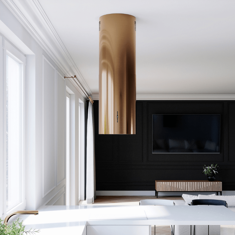 Opis:Krótki opis: klasa energetyczna A, wyspowy, szer. 39 cm, sterowanie klawiszami Soft-Touch, zakres prędkości: 3 biegi + boost, wydajność max. 715 m3/h, głośność min. 46 dB, wykonanie: stal szlachetna lakierowana na kolor złoty, oświetlenie POWER LED 2 x 5 W. Linia LaniliaZalety i korzyści dla użytkownika okapu LANILIA Wereniso Isola 39.1 Carmel GoldWyjątkowy, stylowy, elegancki — Wereniso to znacznie więcej niż okap. To wyjątkowa biżuteria wnętrza, która uczyni kuchnię miejscem pełnym elegancji. Okap tuba to kwintesencja dobrego stylu i nowoczesnej technologii. Z tym urządzeniem zyskasz zachwycającą, cichą kuchnię wolną od oparów i nieprzyjemnych zapachów. Maksymalna wydajność: 715 m3/h Klawisze Soft-Touch Cicha praca: min. 46 dBFunkcjonalności: Okap wyspowy LANILIA Wereniso Isola 39.1 Carmel Gold to urządzenie, które dostępne jest zarówno jako wyciąg, jak i jako pochłaniacz. Wyciąg odprowadzi zassane powietrze oraz parę wodną na zewnątrz pomieszczenia. Może on być zastosowany jedynie w przypadku, gdy kuchnia posiada podłączenie do kanału wentylacyjnego. Pochłaniacz natomiast oczyści powietrze i wtłoczy je z powrotem do pomieszczenia. Maksymalna wysokość okapu to 140 cm. Dzięki temu można zamontować okap w pomieszczeniach z wysokim sufitem zachowując prawidłową odległość od płyty kuchennej. Okap wyspowy posiada filtr aluminiowy, a w przypadku działania jako pochłaniacz - można go także wyposażyć w filtr węglowy. Filtr aluminiowy to podstawowy element wyposażenia okapu - oczyszcza on powietrze z tłustych cząsteczek, dzięki czemu nie osiadają one na powierzchni sprzętów kuchennych i mebli. Natomiast filtr węglowy (trzeba zakupić go oddzielnie) oczyszcza powietrze z zapachów. Urządzenie wyróżnia się cichą pracą (minimalna głośność to zaledwie 46 dB). Komfortowe oświetlenie typu Power LED zapewnia dobre warunki do przygotowywania posiłków. 3 stopnie prędkości oraz funkcja boost pozwalają na idealne dostosowanie szybkości odprowadzania powietrza do aktualnych warunków panujących w kuchni. Sterowanie odbywa się za pomocą klawiszy Soft-Touch, a panel wyposażono dodatkowo w wyświetlacz LED. Pracę urządzenia wspomaga wyłącznik czasowy, który pozwala nam na ustawienie czasu (15 minut), po którym okap ma zakończyć pochłanianie oparów.Kolor złoty:Złoty okap wyspowy Wereniso ulokowany nad wyspą kuchenną dopełni aranżację. Sprawdzi się znakomicie w nowoczesnych wnętrzach inspirowanych najnowszymi trendami, jak również w miejscach, gdzie dominuje klasyczna elegancja.Przeznaczenie:Okap ten przeznaczony jest do montażu nad wyspą kuchenną. Można go również zaaranżować jako okap przyścienny montując go do sufitu blisko ściany.Materiały:Do produkcji okapu wyspowego LANILIA Wereniso Isola 39.1 Carmel Gold zastosowano stal szlachetną (Inox), która została pomalowana na kolor złoty. Spód okapu jest wykonany ze szkła. Id produktu Id #221