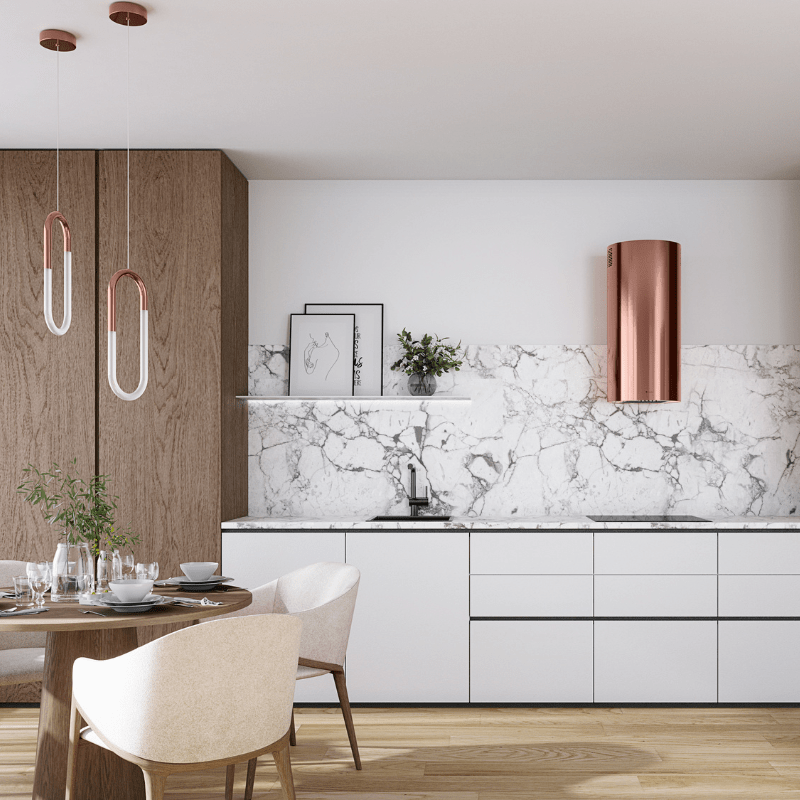 Opis:Klasa energetyczna: B, przyścienny, okrągły, gł. 43 cm, sterowanie push-button, zakres prędkości: 3, wydajność max. 570 m3/h, głośność min. 47 dB, wykonanie: stal lakierowana proszkowo na kolor miedziany, oświetlenie LED 6 W. Linia GLOBALO DesignZalety i korzyści dla użytkownika okapu GLOBALO Lobelio 39.1 Wine CopperPrawdziwa perełka wśród przyściennych okrągłych okapów kuchennych – Lobelio 39.1 Wine Copper zachwyca oryginalną stylistyką i ponadczasowością użytych materiałów. Prezentowany przez nas model to połączenie nowoczesnej technologii, wysokiej funkcjonalności i wyjątkowego designu. Maksymalna wydajność: 570 m3/h Sterowanie push-button Energooszczędne oświetlenie LEDFunkcjonalności: Prezentowany okap przyścienny okrągły może działać w dwóch trybach. Pochłaniacz szybko i sprawnie filtruje powietrze w kuchni, natomiast wyciąg (po podłączeniu do kanału wentylacyjnego) odprowadza opary na zewnątrz. Filtry aluminiowy i węglowy zapewniają nienaganną pracę urządzenia. Filtr aluminiowy pochłania tłuste drobiny i uwalnia sprzęty kuchenne od nieprzyjemnej w dotyku lepkiej warstwy. Natomiast filtr węglowy można zamówić opcjonalnie, jeżeli urządzenie pracuje w trybie pochłaniacza (zawarte w nim cząsteczki aktywnego węgla neutralizują przykre zapachy). Komfortowe oświetlenie typu Power LED zapewnia dobre warunki do przygotowywania posiłków. Na szczególną uwagę zasługuje cicha praca sprzętu – od 47 dB – która przyczynia się do zwiększenia komfortu użytkowania pomieszczenia. 3-stopniowy zakres intensywności działania pozwala dostosować pracę okapu do indywidualnych potrzeb. Okap kuchenny Lobelio 39.1 Wine Copper sterowany jest za pomocą klawiszy push-button.Przeznaczenie:Lobelio 39.1 Wine Copper to klasa, styl i elegancja zestawiona z najnowocześniejszą technologią oraz wysoką funkcjonalnością. Model ten sprawdzi się w nowocześnie zaaranżowanej kuchni. Zadbaliśmy tutaj o każdy, nawet najmniejszy szczegół, tworząc produkt na miarę XXI wieku.Materiały:Połączenie stali lakierowanej na kolor miedziany oraz wygodnego sterowania push-button pozwoliło stworzyć okap o niebanalnej stylistyce i ponadczasowym designie.Dobrze wiedzieć!Okap okrągły Lobelio 39.1 Wine Copper to urządzenie wyjątkowo skuteczne i energooszczędne.Id produktu Id338#