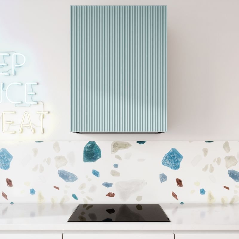 Opis:Klasa energetyczna A+, przyścienny, szer. 60 cm, gł. 32 cm, sterowanie sensorowe (dotykowe) z wyświetlaczem LED, zakres prędkości: 3 + boost, wydajność max. 720 m3/h, głośność min. 43 dB, wykonanie: czarne hartowane szkło, lamele lakierowana na kolor miętowy, oświetlenie LED 5 W, dodatki: pilot. Linia GLOBALO Silent QualitySzafka ryflowana z okapem Lowio 60.1 BL/MintLekka, interesująca forma okapu przyściennego Lowio 60.1 BL/Mint stworzona została z myślą o nowoczesnych, jasnych kuchniach. Niespotykany design z pewnością zachwyci wszystkich wielbicieli oryginalnie prezentujących się sprzętów. Okap sprzedawany jest w komplecie z szafką kuchenną, która dzięki swojej dekoracyjnej, ryflowanej powierzchni ucieszy każdego miłośnika nowoczesnych trendów. Maksymalna wydajność: 720 m3/h Klasa energetyczna: A+ Oświetlenie LEDLowio może zostać zamontowany na równi ze standardowymi szafkami kuchennymi o głębokości 32 cm. Wylot z okapu znajduje się w górze szafki (rura dostępna jest w zestawie). Okap w takiej formie może pracować jako pochłaniacz. Istnieje również możliwość podłączenia okapu do wlotu wentylacyjnego znajdującego się w ścianie - o szczegóły zapytaj naszych doradców.Funkcjonalności: Okap ryflowany Lowio 60.1 BL/Mint można zakupić w trybie wyciągu bądź w trybie pochłaniacza. Gdy mamy dostęp do kanału wentylacyjnego - warto wybrać ten pierwszy wariant, ponieważ trwale usunie on opary z pomieszczenia kuchennego. Natomiast tryb pochłaniacza przefiltruje powietrze w obiegu zamkniętym - na poziomie kuchni. Okap posiada wbudowany filtr aluminiowy (wielowarstwowy i wzmacniany), który gromadzi tłuste substancje, aby nie osiadały na innych powierzchniach. W trybie pochłaniacza każdorazowo polecamy również dokupić pochłaniający zapachy filtr węglowy. Subtelne oświetlenie LED jest niezwykle pomocne podczas wieczornego gotowania. Dotykowe sterowanie jest intuicyjne i przyjemne. W zestawie znajduje się także pilot pozwalają na zdalną regulację sprzętu. Okap posiada też funkcję boost, czyli tryb podwyższonej wydajności. Pracę ułatwia i automatyzuje piętnastominutowy wyłącznik czasowy.Przeznaczenie: Okap z szafką Lowio 60.1 BL/Mint - stylowy i utrzymany w pastelowej kolorystyce - najlepiej sprawdzi się, wykorzystany w minimalistycznych, jasnych kuchniach.Materiały: Okap kuchenny Lowio 60.1 BL/Mint wykonano ze stali lakierowanej na czarno. Fronty lamelowe szafki lakierowane są na miętowy kolor.Dobrze wiedzieć! Utrzymanie okapu w czystości ułatwiają spraye: Berner Wonderclean - do powierzchni lakierowanych i Berner Active - do szkła.Id produktu Id#