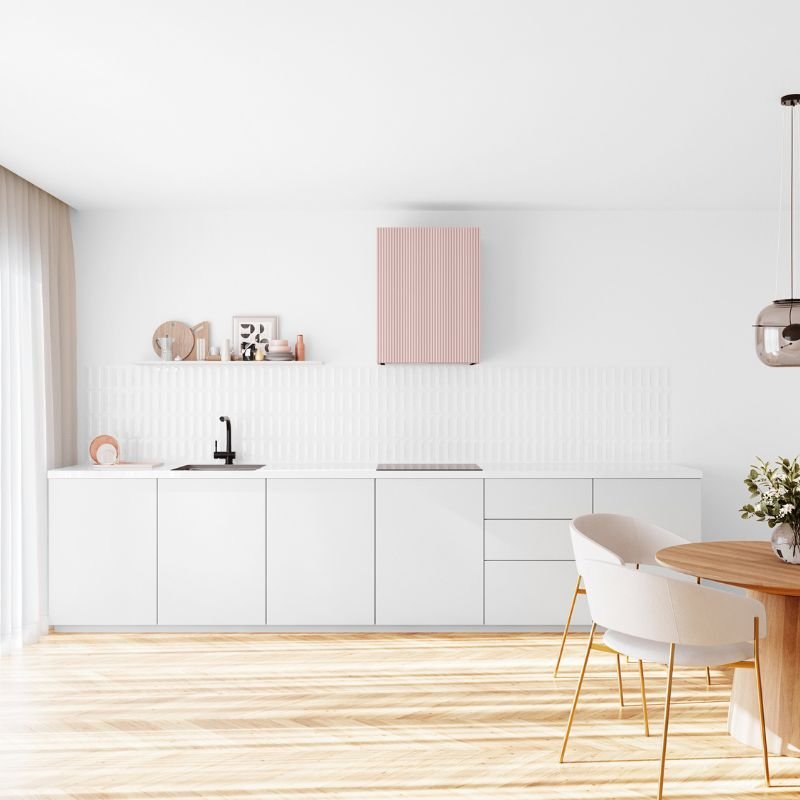Opis:Klasa energetyczna A+, przyścienny, szer. 60 cm, gł. 32 cm, sterowanie sensorowe (dotykowe) z wyświetlaczem LED, zakres prędkości: 3 + boost, wydajność max. 720 m3/h, głośność min. 43 dB, wykonanie: czarne hartowane szkło, lamele lakierowana na kolor różowy, oświetlenie LED 5 W, dodatki: pilot. Linia GLOBALO Silent QualitySzafka ryflowana z okapem Lowio 60.1 BL/Velvet RoseLekka, interesująca forma okapu przyściennego Lowio 60.1 BL/Velvet Rose stworzona została z myślą o nowoczesnych, jasnych kuchniach. Niespotykany design z pewnością zachwyci wszystkich wielbicieli oryginalnie prezentujących się sprzętów. Okap sprzedawany jest w komplecie z szafką kuchenną, która dzięki swojej dekoracyjnej, ryflowanej powierzchni ucieszy każdego miłośnika nowoczesnych trendów. Maksymalna wydajność: 720 m3/h Klasa energetyczna: A+ Oświetlenie LEDLowio może zostać zamontowany na równi ze standardowymi szafkami kuchennymi o głębokości 32 cm. Wylot z okapu znajduje się w górze szafki (rura dostępna jest w zestawie). Okap w takiej formie może pracować jako pochłaniacz. Istnieje również możliwość podłączenia okapu do wlotu wentylacyjnego znajdującego się w ścianie - o szczegóły zapytaj naszych doradców.Funkcjonalności: Okap ryflowany Lowio 60.1 BL/Velvet Rose można zakupić w trybie wyciągu bądź w trybie pochłaniacza. Gdy mamy dostęp do kanału wentylacyjnego - warto wybrać ten pierwszy wariant, ponieważ trwale usunie on opary z pomieszczenia kuchennego. Natomiast tryb pochłaniacza przefiltruje powietrze w obiegu zamkniętym - na poziomie kuchni. Okap posiada wbudowany filtr aluminiowy (wielowarstwowy i wzmacniany), który gromadzi tłuste substancje, aby nie osiadały na innych powierzchniach. W trybie pochłaniacza każdorazowo polecamy również dokupić pochłaniający zapachy filtr węglowy. Subtelne oświetlenie LED jest niezwykle pomocne podczas wieczornego gotowania. Dotykowe sterowanie jest intuicyjne i przyjemne. W zestawie znajduje się także pilot pozwalają na zdalną regulację sprzętu. Okap posiada też funkcję boost, czyli tryb podwyższonej wydajności. Pracę ułatwia i automatyzuje piętnastominutowy wyłącznik czasowy.Przeznaczenie: Okap z szafką Lowio 60.1 BL/Velvet Rose- stylowy i utrzymany w pastelowej kolorystyce - najlepiej sprawdzi się, wykorzystany w minimalistycznych, jasnych kuchniach.Materiały: Okap kuchenny Lowio 60.1 BL/Velvet Rose wykonano ze stali lakierowanej na czarno. Fronty lamelowe szafki lakierowane są na różowy kolor.Dobrze wiedzieć! Utrzymanie okapu w czystości ułatwiają spraye: Berner Wonderclean - do powierzchni lakierowanych i Berner Active - do szkła.Id produktu Id#540
