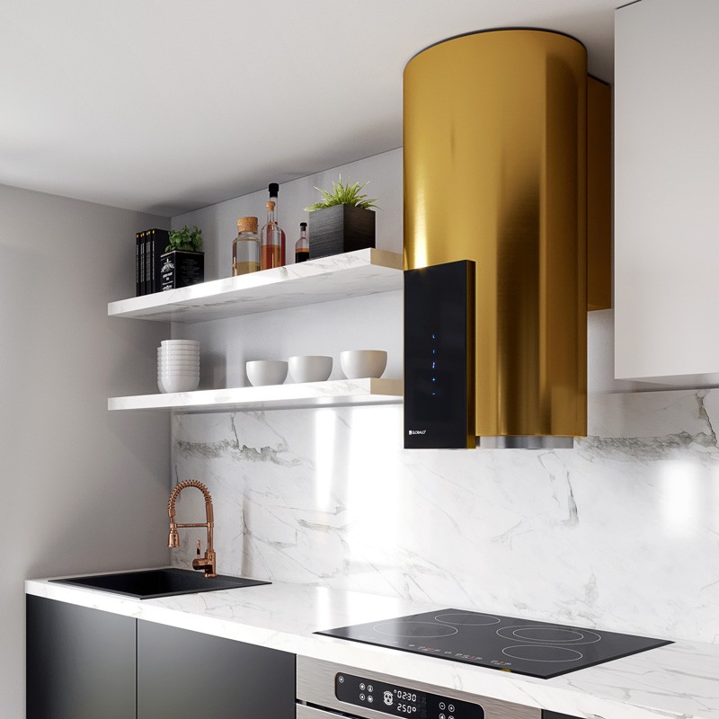 Opis:Klasa energetyczna: B, przyścienny, okrągły, gł. 50 cm, sterowanie sensorowe (dotykowe) ze wskaźnikiem LED, zakres prędkości: 3 + boost, wydajność max. 710 m3/h, głośność min. 49 dB, wykonanie: stal lakierowana na kolor złoty, oświetlenie LED 2 x 2 W, dodatki: funkcja Turbo, timer. Linia GLOBALO ExclusiveZalety i korzyści dla użytkownika okapu Roxano 39.1 GoldPrawdziwa perełka wśród przyściennych okrągłych okapów kuchennych – Roxano 39.1 Gold zachwyca oryginalną stylistyką i ponadczasowością użytych materiałów. Prezentowany przez nas model to połączenie nowoczesnej technologii, wysokiej funkcjonalności i wyjątkowego designu. Maksymalna wydajność: 710 m3/h Sterowanie dotykowe Energooszczędne oświetlenie LEDFunkcjonalności: Prezentowany okap przyścienny okrągły może działać w dwóch trybach. Pochłaniacz szybko i sprawnie filtruje powietrze w kuchni, natomiast wyciąg (po podłączeniu do kanału wentylacyjnego) odprowadza opary na zewnątrz. Filtry aluminiowy i węglowy zapewniają nienaganną pracę urządzenia. Filtr aluminiowy pochłania tłuste drobiny i uwalnia sprzęty kuchenne od nieprzyjemnej w dotyku lepkiej warstwy. Natomiast filtr węglowy można zamówić opcjonalnie, jeżeli urządzenie pracuje w trybie pochłaniacza (zawarte w nim cząsteczki aktywnego węgla neutralizują przykre zapachy). Przyjazne dla oka, a zarazem wyjątkowo stylowe oświetlenie LED idealnie uzupełnia iluminację w pomieszczeniu. Na szczególną uwagę zasługuje cicha praca sprzętu – od 49 dB – która przyczynia się do zwiększenia komfortu użytkowania pomieszczenia. 4-stopniowy zakres intensywności działania + funkcja boost pozwalają dostosować pracę okapu do indywidualnych potrzeb. Okap kuchenny Roxano 39.1 Gold sterowany jest sensorycznie.Przeznaczenie:Roxano 39.1 Gold to klasa, styl i elegancja zestawiona z najnowocześniejszą technologią oraz wysoką funkcjonalnością. Model ten sprawdzi się w nowocześnie zaaranżowanej kuchni. Zadbaliśmy tutaj o każdy, nawet najmniejszy szczegół, tworząc produkt na miarę XXI wieku.Materiały:Połączenie stali lakierowanej na złoto oraz wygodnego sterowania dotykowego pozwoliło stworzyć okap o niebanalnej stylistyce i ponadczasowym designie.Dobrze wiedzieć!Okap okrągły Roxano 39.1 Gold to urządzenie wyjątkowo energooszczędne i wyróżniające się klasą energetyczną B.Id produktu Id138#