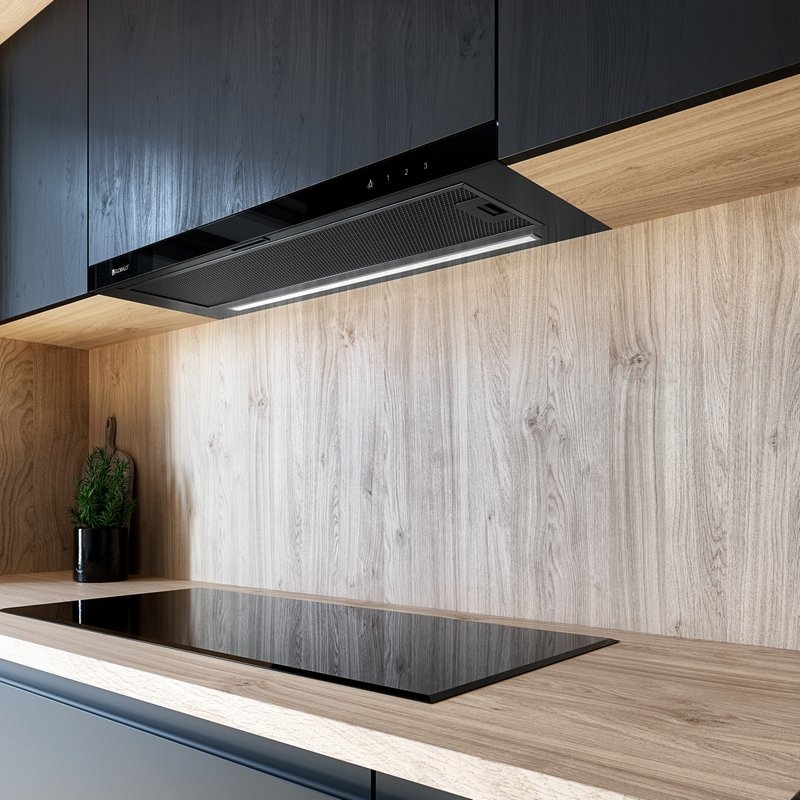 Opis:Klasa energetyczna B, do zabudowy, szer. 89,6 cm, gł. 28,5 cm, sterowanie sensorowe (dotykowe) z wyświetlaczem LED, zakres prędkości: 3 biegi, wydajność max. 570 m3/h, głośność min. 46 dB, wykonanie: czarne hartowane szkło, stal lakierowana na kolor czarny, oświetlenie pasmo Led 6W. Linia GLOBALO Design Zalety i korzyści dla użytkownika okapu Teslo 90.1 BlackTeslo 90.1 Black to propozycja dla wszystkich tych, którzy cenią sobie optymalne zagospodarowanie kuchennej przestrzeni. Kompaktowe kształty sprawiają, że okap ten znajdzie zastosowanie w szczególności w pomieszczeniach o niewielkim metrażu. Sterowanie dotykowe Oświetlenie pasmo Led 6W Barwa światła 3800KFunkcjonalności: Tryb działania: okap kuchenny do zabudowy Teslo 90.1 Black może działać jako pochłaniacz bądź wyciąg. Tryb pierwszy filtruje powietrze, które następnie wraca do pomieszczenia, zaś tryb drugi wyprowadza opary poza obręb kuchni. Tryb wyciągu możliwy jest tylko wtedy, gdy dysponujemy podłączeniem do kanału wentylacyjnego. Prezentowany okap podszafkowy wyposażony jest w przeciwtłuszczowy filtr aluminiowy. Filtr węglowy ASC 200 (absorbujący przykre zapachy) należy natomiast zakupić oddzielnie - co jest zasadne wyłącznie w trybie pochłaniacza. Teslo 90.1 Black cechuje się cichą pracą (głośność min. 46 dB) – jego działanie nie przeszkadza więc w codziennym funkcjonowaniu. Przyjazne dla wzroku oświetlenie w postaci pasma Led zapewnia optymalne doświetlenie przestrzeni roboczej podczas gotowania oraz nadaje całości niepowtarzalnego charakteru. Sterowanie dotykowe umożliwia sterowanie urządzeniem opuszkami palców. Trzy biegi umożliwiają dobór mocy zależnie od naszych aktualnych potrzeb. Przeznaczenie: Z racji kompaktowych kształtów (szer. 89,6 cm, gł. 28,5 cm) okap kuchenny Teslo 90.1 Black doskonale sprawdzi się we wnętrzach o niewielkim metrażu. Smukła linia oraz nowoczesny design sprawiają, że okap ten doskonale sprawdzi się w nowocześnie zaaranżowanych wnętrzach.Materiały: Okap kuchenny do zabudowy Teslo 90.1 Black wykonany został z czarnego, hartowanego szkła oraz wysokiej jakości stali lakierowanej na kolor czarny.Dobrze wiedzieć! Aby utrzymać okap w czystości, zakonserwować go i tym samym przedłużyć jego żywotność - warto użyć specjalistycznych środków Berner Inox oraz Berner Active.Id produktu ID 304