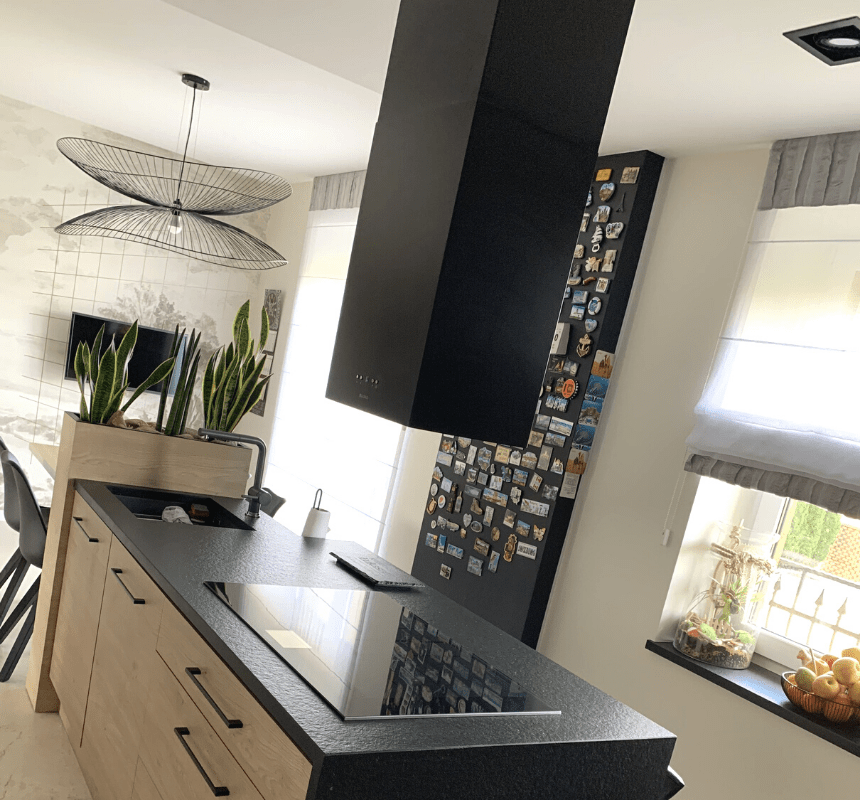 Opis:Klasa energetyczna B, wyspowy, szer. 40 cm, gł. 30 cm, sterowanie elektroniczne klawiszami Soft-Touch z wyświetlaczem LED, zakres prędkości: 3 biegi + boost, wydajność max. 725 m3/h, głośność min. 51 dB, wykonanie: stal lakierowana na czarno, szkło hartowane w kolorze czarnym, oświetlenie PASMO LED 2 x 9 W. Linia GLOBALO Design Zalety i korzyści dla użytkownika okapu Werno Isola 40.2 BlackElegancki, czarny okap może stanowić fantastyczne uzupełnienie kuchennej aranżacji. Maksymalna wydajność: 725 m3/h Klawisze Soft-Touch Wyświetlacz LEDFunkcjonalności: Okap wyspowy Werno 40.2 Black można zamówić w jednym z dwóch trybów pracy: wyciągu lub pochłaniacza. Jeżeli posiadamy niczym nieskrępowany dostęp do kanału wentylacyjnego - warto pokusić się o tryb wyciągu, który trwale usunie opary z pomieszczenia. Gdy takowego dostępu brak - należy zakupić urządzenie w trybie pochłaniacza, który filtruje i oczyszcza powracające do kuchni powietrze. Okap wyposażyliśmy w przeciwtłuszczowy filtr aluminiowy, który ma pomóc utrzymać kuchenne sprzęty w czystości. Do trybu pochłaniacza warto dodatkowo kupić filtr węglowy, aby ten usuwał drażniące nas zapachy. Oświetlenie LED (w postaci 2 pasków) daje przyjemne i miłe dla oka światło. Regulacja sprzętu odbywa się za pomocą klawiszy Soft-Touch, a sterowanie ułatwia wyświetlacz LED. Okap posiada także wyłącznik czasowy (timer: 15 min). Pilot do sterowania okapem w zestawie.Przeznaczenie:Model ten dedykowany jest do dużych i jasnych kuchni, które posiadają wyspy z miejscem do gotowania.Materiały:Okap wyspowy Werno Isola 40.2 Black to stylowa kombinacja lakierowanej na czarno stali oraz szkła hartowanego.Warto wiedzieć:Do czyszczenia lakierowanej powierzchni polecamy używać ściereczek marki Berner - nasączonych specjalnym płynem - lub też spray Berner Wonderclean.Id produktu Id109#