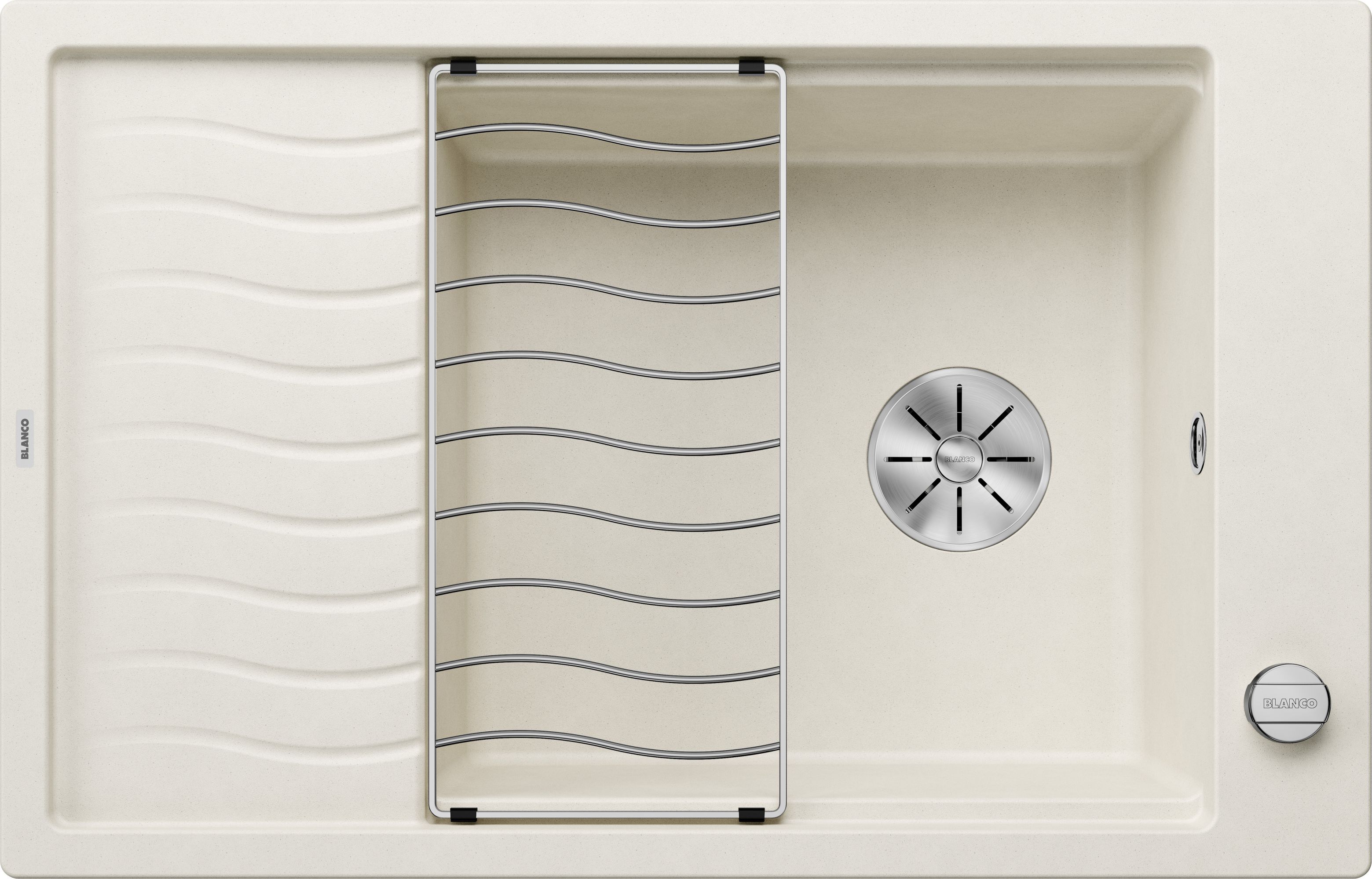 Zlewozmywaki z rodziny BLANCO ELON wyróżniają się przede wszystkim połączeniem dużej komory i zwiększonej powierzchni ociekacza, przy równoczesnym zachowaniu kompaktowych wymiarów zewnętrznych. BLANCO ELON XL 8 S jest przeznaczony do montażu w szafce o szerokości 80 cm - dla jeszcze większego komfortu podczas przygotowywania posiłków i zmywania naczyń. Do małych kuchni polecamy model BLANCO ELON 45 S, który zapewnia maksymalne wykorzystanie przestrzeni na niewielkiej powierzchni. Dzięki przesuwanej kratce ociekowej ze stali szlachetnej, we wszystkich trzech modelach BLANCO ELON można zyskać dodatkowe miejsce do odstawiania umytych naczyń, nie ograniczając przy tym korzystania z komory zlewozmywaka. Nowoczesny, falisty design kratki ociekowej jest powtórzony na ociekaczu, co sprawia, że są one do siebie doskonale dopasowane. Praktyczną kratkę ociekową, zawartą w cenie zlewozmywaka, można wykorzystać do serwowania potraw, np. jako dekoracyjną podkładkę pod gorące naczynia.