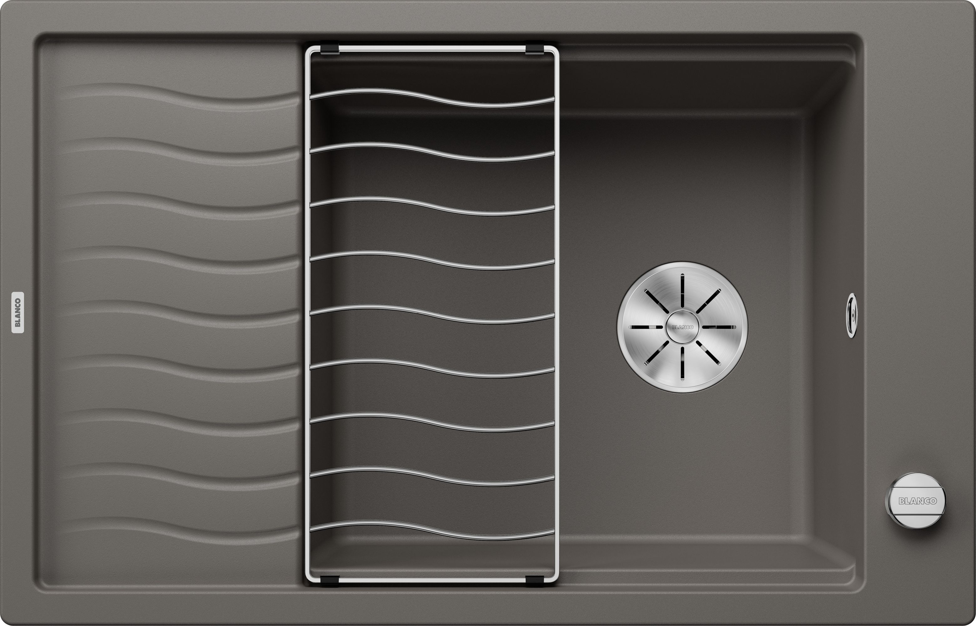 Zlewozmywaki z rodziny BLANCO ELON wyróżniają się przede wszystkim połączeniem dużej komory i zwiększonej powierzchni ociekacza, przy równoczesnym zachowaniu kompaktowych wymiarów zewnętrznych. BLANCO ELON XL 8 S jest przeznaczony do montażu w szafce o szerokości 80 cm - dla jeszcze większego komfortu podczas przygotowywania posiłków i zmywania naczyń. Do małych kuchni polecamy model BLANCO ELON 45 S, który zapewnia maksymalne wykorzystanie przestrzeni na niewielkiej powierzchni. Dzięki przesuwanej kratce ociekowej ze stali szlachetnej, we wszystkich trzech modelach BLANCO ELON można zyskać dodatkowe miejsce do odstawiania umytych naczyń, nie ograniczając przy tym korzystania z komory zlewozmywaka. Nowoczesny, falisty design kratki ociekowej jest powtórzony na ociekaczu, co sprawia, że są one do siebie doskonale dopasowane. Praktyczną kratkę ociekową, zawartą w cenie zlewozmywaka, można wykorzystać do serwowania potraw, np. jako dekoracyjną podkładkę pod gorące naczynia.