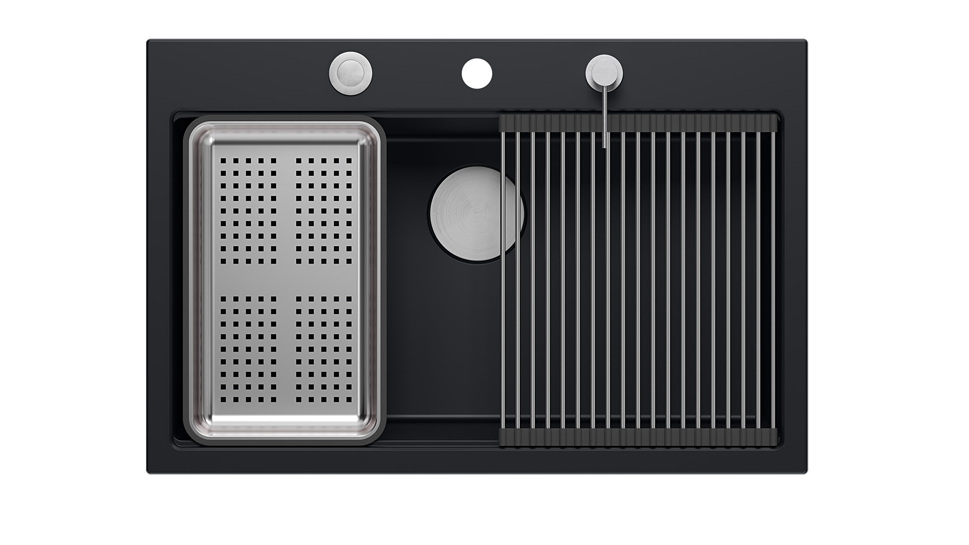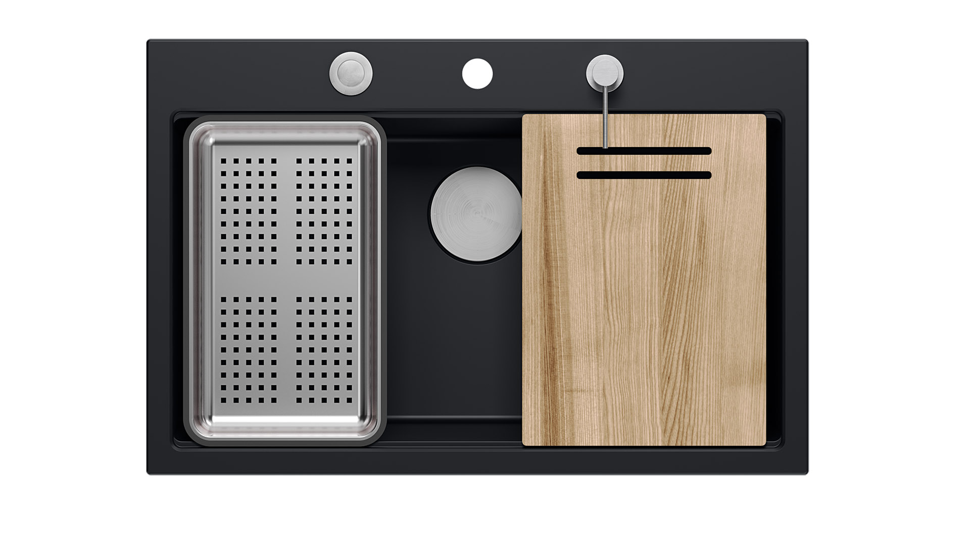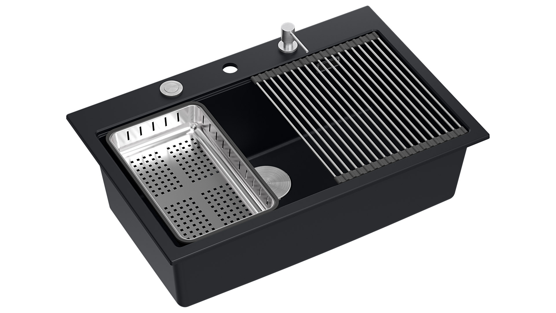 Zlewozmywak granitowy MARC Zlewozmywaki GraniteQ wytwarzane są z drobnych cząsteczek granitu (75-80% finalnego wyrobu) - połączonych ze sobą wysokiej jakości spoiwem - dzięki czemu charakteryzują się wyjątkową wytrzymałością oraz odpornością na zróżnicowane temperatury i charakter wykonywanych w ich obrębie prac. Dodatkowo GraniteQ dostępny jest również w opalizujących kolorach uzyskanych dzięki domieszce metalicznych drobinek. Nawet najbardziej wymagający użytkownicy będą usatysfakcjonowani, gdy oświetlenie nad blatem sprawi, iż kuchnia zabłyszczy delikatnym połyskiem swojej nowej „biżuterii”. Efekt ten może zostać spotęgowany dzięki akcesoriom ze stali szlachetnej, pokrytej w technologii PVD - w kolorach złota oraz miedzi. Zlewozmywaki granitowe marki Quadron są przyjemnie gładkie i delikatne w dotyku, co ma znaczenie również dla zachowania czystości i higieny. Marc Workstation GraniteQ - to kolekcja dla użytkowników oczekujących rozbudowanej funkcjonalności zlewozmywaka. W przypadku tego modelu, dzięki zastosowaniu bardzo dużej, 61 -litrowej komory, wygodnie opłuczemy i umyjemy nawet duże blachy z piekarnika! Wariant ze stalową armaturą , uzupełniony jest dodtkowo o trzy funkcjonalne akcesoria w tym samym kolorze ( Qmata , dozownik , wkładka ) oraz drewniana deska kuchenna. Natomiast zlewy z armaturą w powłoce PVD , w komplecie otrzymują jeden* dodatkowy element wyposażenia kuchennego ( dozownik ) oraz drewniana deska kuchenna Model MARC , przeznaczeny do intensywnego użytkowania, nie wyklucza eleganckiego i stylowego wyglądu! W skład zestawu wchodzi: zlewozmywak w kolorze pure carbon - matowa, atramentowa głębia czarnego granitu 4 szt. zaczepów do zlewozmywaka wpuszczanego stalowa nakładka na odpływ ø 115 mm w kolorze stalowym dozownik na mydło/płyn o pojemności 350 ml w kolorze stalowym przyścienny odpływ Push-2-Open 3 1/2" z syfonem Save Space drewniana, jesionowa deska do krojenia o wymiarze 38 x 28 x 2 cm wielofunkcyjna Qmata w wymiarze 38 x 32 cm z silikonowym wykończeniem posiadająca 19 patyczków stalowa wkładka ociekowa o wymiarze 38 x 23 x 6 cm Zachęcamy do pobrania katalogu , w którym znajdą Państwo wszystkie nasze modele produktów w pełnej kolorystyce. *istnieje możliwość dokupienia pasującej do zlewozmywaka Marc Qmata z powłoką PVD (złoto lub miedź)