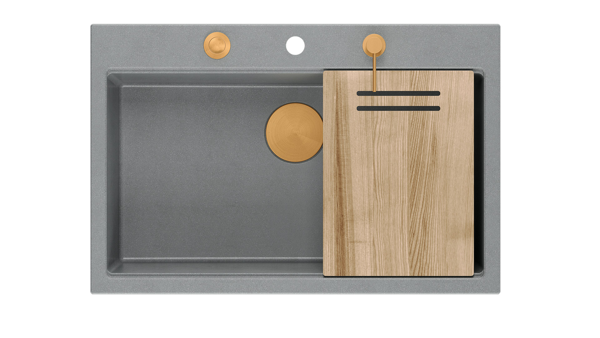 Zlewozmywak granitowy MARC Zlewozmywaki GraniteQ wytwarzane są z drobnych cząsteczek granitu (75-80% finalnego wyrobu) - połączonych ze sobą wysokiej jakości spoiwem - dzięki czemu charakteryzują się wyjątkową wytrzymałością oraz odpornością na zróżnicowane temperatury i charakter wykonywanych w ich obrębie prac. Dodatkowo GraniteQ dostępny jest również w opalizujących kolorach uzyskanych dzięki domieszce metalicznych drobinek. Nawet najbardziej wymagający użytkownicy będą usatysfakcjonowani, gdy oświetlenie nad blatem sprawi, iż kuchnia zabłyszczy delikatnym połyskiem swojej nowej „biżuterii”. Efekt ten może zostać spotęgowany dzięki akcesoriom ze stali szlachetnej, pokrytej w technologii PVD - w kolorach złota oraz miedzi. Zlewozmywaki granitowe marki Quadron są przyjemnie gładkie i delikatne w dotyku, co ma znaczenie również dla zachowania czystości i higieny. Marc Workstation GraniteQ - to kolekcja dla użytkowników oczekujących rozbudowanej funkcjonalności zlewozmywaka. W przypadku tego modelu, dzięki zastosowaniu bardzo dużej, 61 -litrowej komory, wygodnie opłuczemy i umyjemy nawet duże blachy z piekarnika! Wariant ze stalową armaturą , uzupełniony jest dodtkowo o trzy funkcjonalne akcesoria w tym samym kolorze ( Qmata , dozownik , wkładka ) oraz drewniana deska kuchenna. Natomiast zlewy z armaturą w powłoce PVD , w komplecie otrzymują jeden* dodatkowy element wyposażenia kuchennego ( dozownik ) oraz drewniana deska kuchenna Model MARC , przeznaczeny do intensywnego użytkowania, nie wyklucza eleganckiego i stylowego wyglądu! W skład zestawu wchodzi: zlewozmywak w kolorze silver stone - kamienna natura z domieszką metalicznych drobinek 4 szt. zaczepów do zlewozmywaka wpuszczanego stalowa nakładka na odpływ ø 115 mm w kolorze miedzi dozownik na mydło/płyn o pojemności 350 ml w kolorze miedzi przyścienny odpływ Push-2-Open 3 1/2" z syfonem Save Space drewniana, jesionowa deska do krojenia o wymiarze 38 x 28 x 2 cm Technologia PVD – biżuteria w kuchni Powierzchnia stali szlachetnej SteelQ została uszlachetniona metodą naparowywania gazowego. Jest to obecnie najtrwalsza powłoka, której metoda polega na umieszczeniu produktu ze stalii szlachetnej w komorze próżniowej i nanoszeniu pod ciśnieniem rozpylonych cząsteczek innych metali (azotków cyrkonu, tytanu, chromu). Metoda PVD jest zdecydowanie bardziej kosztowna od tradycyjnych sposobów nanoszenia powłok dlatego stosowana jest również przez ceniących sobie wysoką jakość, renomowanych producentów zegarków i uznane firmy jubilerskie na świecie przy pozłacaniu. Zachęcamy do pobrania katalogu , w którym znajdą Państwo wszystkie nasze modele produktów w pełnej kolorystyce. *istnieje możliwość dokupienia pasującej do zlewozmywaka Marc Qmata z powłoką PVD (złoto lub miedź)