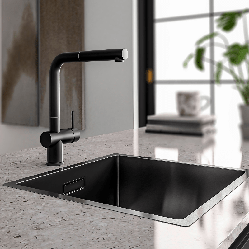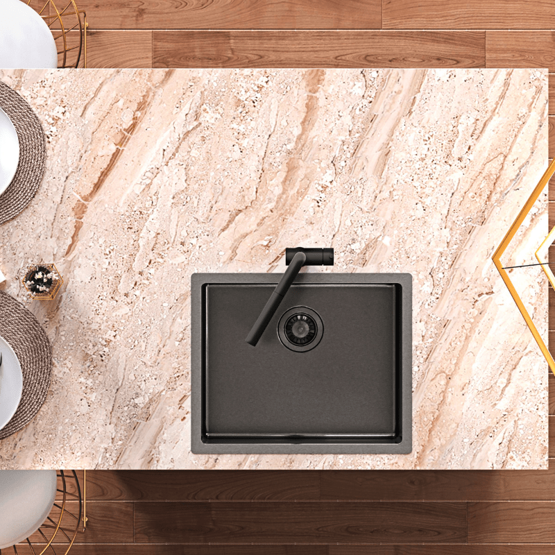 Krótki opis: zlewozmywak stalowy. Wykonanie: stal inox z powłoką PVD w kolorze antracytowym.Zlewozmywak RIWOLO 50.1 w kolorze antracytowymAntracytowy zlewozmywak Riwolo zachwyca pięknym designem i funkcjonalnością. Stanowić będzie funkcjonalny oraz praktyczny element Twojej kuchni, jak również stanie się gustowną dekoracją, która doda niepowtarzalnego charakteru całej przestrzeni. Riwolo to idealny wybór dla tych, którzy cenią wysoką jakość wykonania i niebanalne wzornictwo. Elegancki, kształt i kolor sprawiają, że zlewozmywak znajdzie zastosowanie zarówno w nowoczesnych, ale również w klasycznych kuchniach.Zlewozmywak Riwolo zawiera: zlewozmywak, syfon oraz dekoracyjną kratkę odpływową w kolorze Antracytowym.Zalety i korzyści dla użytkownika Trzy sposoby montażu - zlew Riwolo możesz umieścić na blacie, pod blatem lub zlicować na równi z nim. Duża i pojemna komora -wygodnie umyjesz naczynia, dzięki głębokiej aż na 20 cm komorze. Wyjątkowe wzornictwo - zlewozmywak Riwolo jest wykończony w kolorze antracytowym, dlatego będzie eleganckim akcentem w kuchni. Malowanie metodą PVD zwiększa odporność na zarysowanie, dzięki czemu przy odpowiedniej pielęgnacji nawet po długim czasie zlewozmywak będzie prezentował się jak nowy. Dekoracyjna i funkcjonalna maskownica odpływu.Przeznaczenie:Zlewozmywak może być montowany w następujący sposób: nablatowy podwieszany zlicowany z blatemMateriały: Zlewozmywak został wykonany ze stali inox, na który została naniesiona powłoka PVD w kolorze antracytowym.Czyszczenie: Po każdym użyciu umyj zlew miękką ściereczką lub gąbką gorącą wodą z neutralnym detergentem lub bez niego. Powierzchnię zlewozmywaka wysusz po każdym użyciu za pomocą miękkiej ściereczki.Dobrze wiedzieć!Zlewozmywak z powłoką PVD będzie dłużej utrzymywać swoje właściwości estetyczne i funkcjonalność. jeśli zachowasz środki ostrożności i będziesz unikać agresywnych detergentów i szorstkich gąbek. Zawsze rozcieńczaj środki dezynfekcyjne, nie pozostawiaj gorących przedmiotów w zlewie, a także unikaj kontaktu z produktami na bazie cementu oraz produktów z amoniakiem. Dbaj o to, by nie zarysować powierzchni i nie zostawiaj przedmiotów metalowych w zlewie. Warto również unikać przechowywania środków chemicznych w szafkach pod zlewem.#ID608