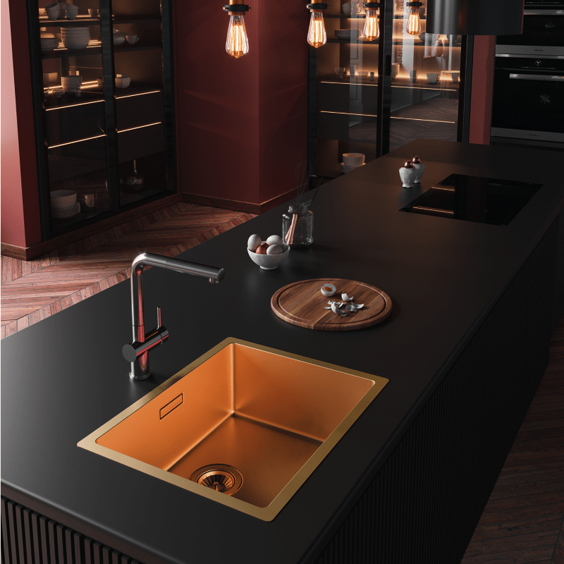 Krótki opis: zlewozmywak stalowy. Wykonanie: stal inox z powłoką PVD w kolorze miedzi.Miedziany zlewozmywak RIWOLO 50.1Miedziany zlewozmywak Riwolo zachwyca pięknym designem i funkcjonalnością. Stanowić będzie funkcjonalny oraz praktyczny element Twojej kuchni, jak również stanie się gustowną dekoracją, która doda niepowtarzalnego charakteru całej przestrzeni. Riwolo to idealny wybór dla tych, którzy cenią wysoką jakość wykonania i niebanalne wzornictwo. Elegancki, kształt i kolor sprawiają, że zlewozmywak znajdzie zastosowanie zarówno w nowoczesnych, ale również w klasycznych kuchniach.Zlewozmywak Riwolo zawiera: zlewozmywak, syfon oraz dekoracyjną kratkę odpływową w kolorze miedzianym.Zlew miedziany Riwolo 50.1 - zalety i korzyści dla użytkownika Trzy sposoby montażu - zlew Riwolo możesz umieścić na blacie, pod blatem lub zlicować na równi z nim. Duża i pojemna komora -wygodnie umyjesz naczynia, dzięki głębokiej aż na 20 cm komorze. Wyjątkowe wzornictwo - zlewozmywak Riwolo jest wykończony w kolorze miedzianym, dlatego będzie eleganckim akcentem w kuchni. Malowanie metodą PVD zwiększa odporność na zarysowanie, dzięki czemu przy odpowiedniej pielęgnacji nawet po długim czasie zlewozmywak będzie prezentował się jak nowy. Dekoracyjna i funkcjonalna maskownica odpływu.Przeznaczenie:Miedziany zlewozmywak Riwolo może być montowany w następujący sposób: nablatowy podwieszany zlicowany z blatemMateriały: Zlewozmywak został wykonany ze stali inox, na który została naniesiona powłoka PVD w kolorze miedzi.Czyszczenie: Po każdym użyciu umyj zlew miękką ściereczką lub gąbką gorącą wodą z neutralnym detergentem lub bez niego. Powierzchnię zlewozmywaka wysusz po każdym użyciu za pomocą miękkiej ściereczki.Dobrze wiedzieć!Zlewozmywak z powłoką PVD będzie dłużej utrzymywać swoje właściwości estetyczne i funkcjonalność. jeśli zachowasz środki ostrożności i będziesz unikać agresywnych detergentów i szorstkich gąbek. Zawsze rozcieńczaj środki dezynfekcyjne, nie pozostawiaj gorących przedmiotów w zlewie, a także unikaj kontaktu z produktami na bazie cementu oraz produktów z amoniakiem. Dbaj o to, by nie zarysować powierzchni i nie zostawiaj przedmiotów metalowych w zlewie. Warto również unikać przechowywania środków chemicznych w szafkach pod zlewem.#ID610